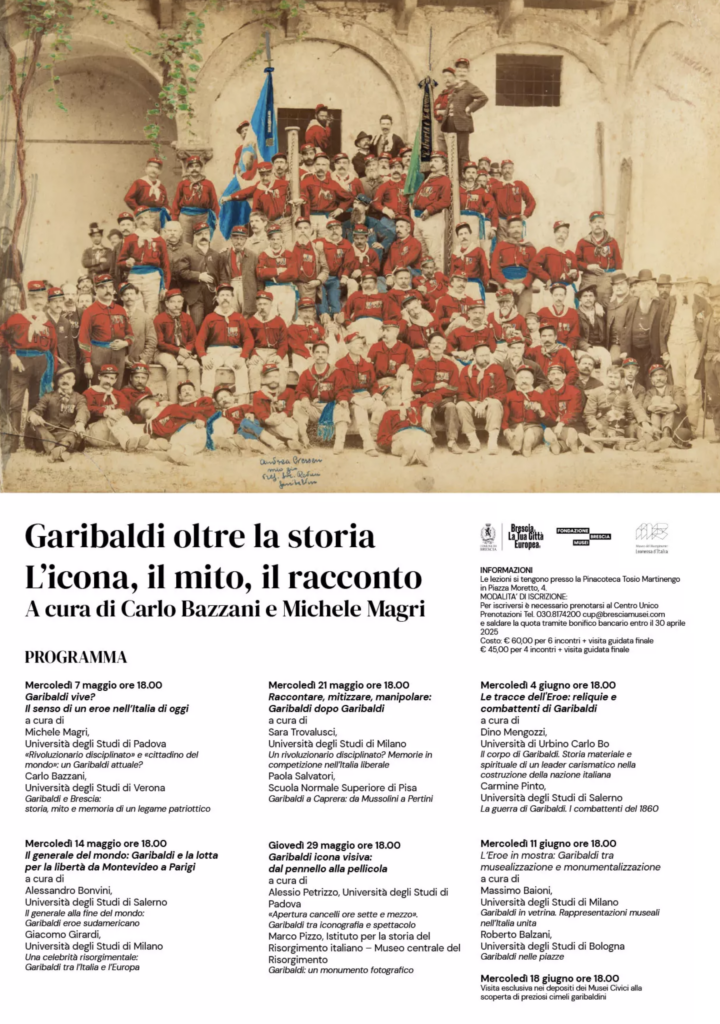 Abstract: Garibaldi è il campione nazionale della monumentomania, come del resto testimoniano i dati raccolti e presentati nel Museo del Risorgimento di Brescia. Ma non tutti i monumenti a Garibaldi hanno la stessa funzione: in alcuni casi, si tratta di un elemento standard della memoria risorgimentale proposto in maniera piuttosto anonima, prevalentemente fra gli anni Ottanta dell’Ottocento e il 1911. Le risorse finanziarie a disposizione, in questo caso, fanno la differenza. In altri casi, il ricordo celebra una relazione speciale fra il territorio e l’eroe, con tanto di racconto aggiunto, attraverso lapidi e immagini. Garibaldi viene allora assimilato agli altri personaggi illustri del luogo, entra nell’album di famiglia. Sono pochi gli esempi in cui il Generale è raffigurato in età relativamente giovane, con abiti e cappello del 1848-49: tutto il Risorgimento di pietra, almeno per quel che riguarda i “grandi”, è maturo/anziano. La gioventù è riservata ai volonterosi comprimari, per lo più destinati al precoce sacrificio. La sopravvivenza degli artefici nel lungo periodo è indice della loro eccezionalità, della capacità di attraversare e sintetizzare le generazioni. Non è frequente, nell’Ottocento, essere un mito giovanile da vecchi.