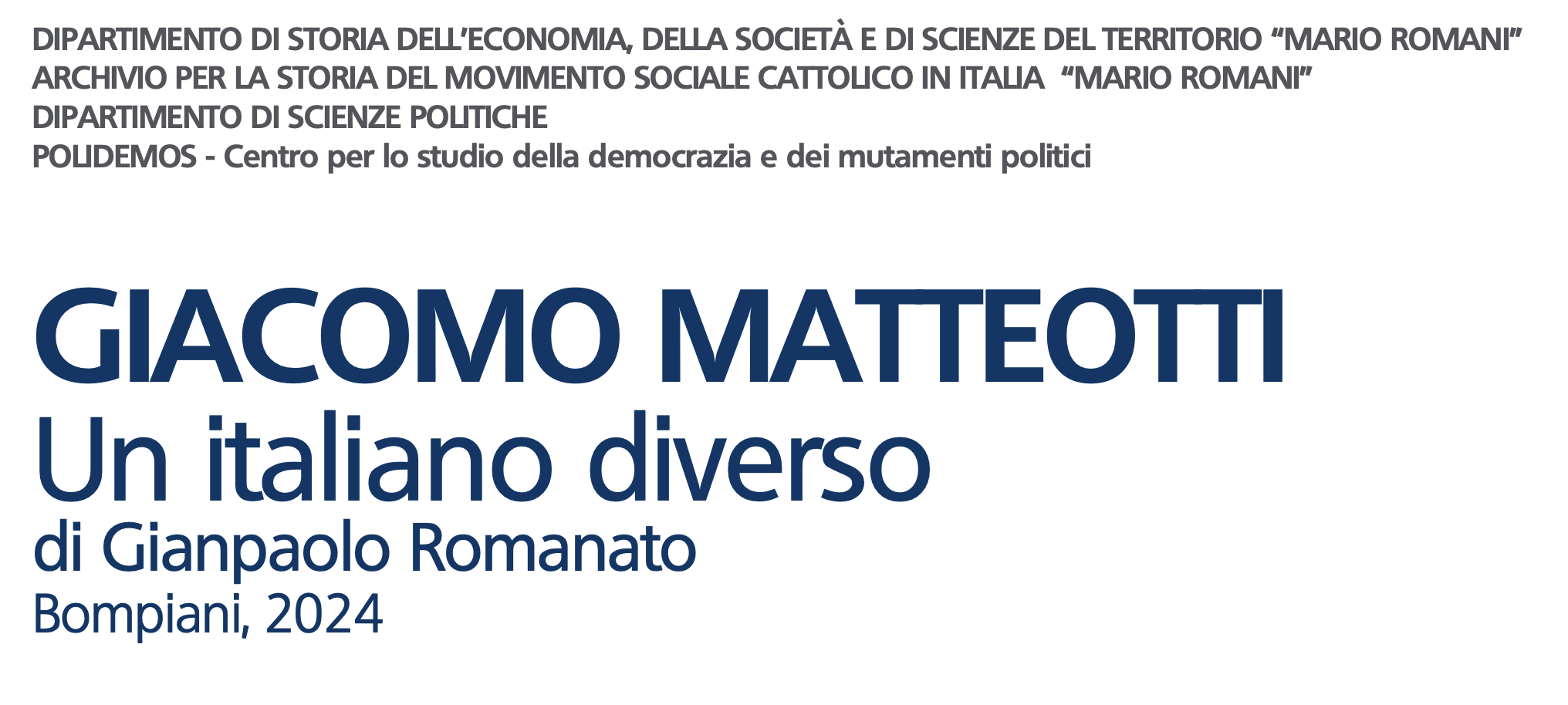 Presentazione del libro Giacomo Matteotti. Un italiano diverso di Gianpaolo Romanato (Bompiani).