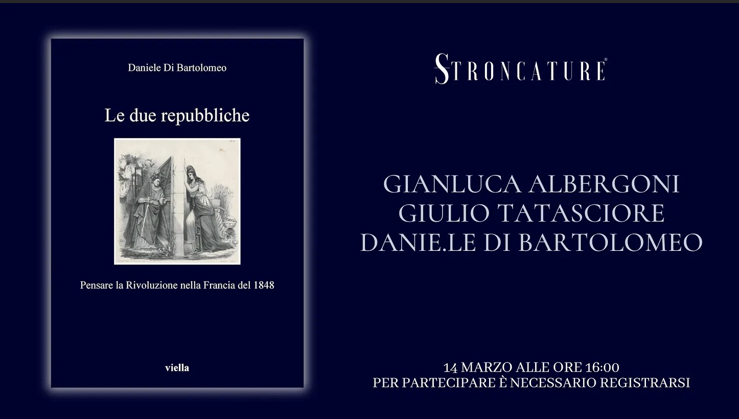 Il prossimo 14 marzo alle 16:00, Stroncature ospiterà la presentazione del libro “Le due repubbliche. Pensare la Rivoluzione nella Francia” di Daniele Di Bartolomeo (Viella, 2024).