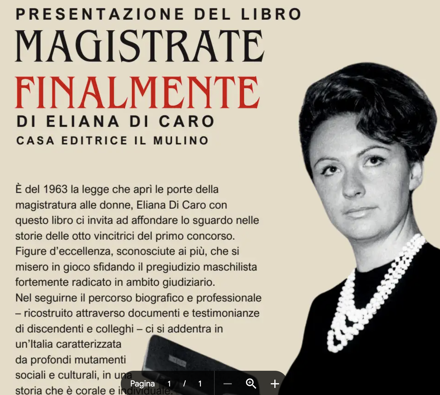 Presentazione del libro di Eliana Di Caro (Il Mulino) sulla legge che aprì le porte della magistratura alle donne.