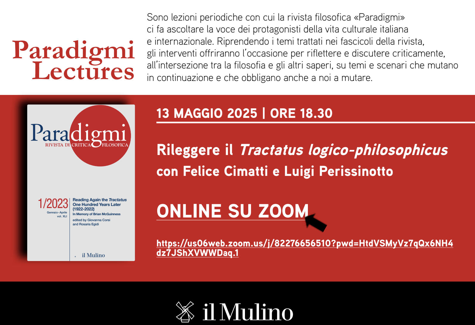 Martedì 13 maggio alle 18.30, Felice Cimatti e Luigi Perissinotto rileggono il Tractatus logico-philosophicus, nell’ambito delle Lectures della rivista «Paradigmi».