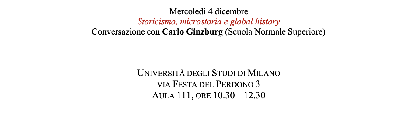 Nell’ambito della didattica del dottorato in Studi storici, conversazione con Carlo Ginzburg (Scuola Normale Superiore).